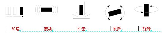 加速、震動、沖擊、傾斜和旋轉(zhuǎn)——除了旋轉(zhuǎn)外,其它四種運動實事上都是加速度在不同時間段的表現(xiàn)。然而,我們?nèi)祟愂菬o法靠直覺來做出運動狀態(tài)的判斷,例如震動是加速還是減速。分別地考慮每一種模式可以幫助我們想出更多可能的應用。