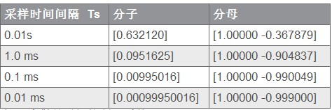 這樣做的目的是為了將內(nèi)部采樣偏移 (inter sample deviation) 控制在可以接受的最小范圍內(nèi)。為說明這種情況,表 1 列出了采樣率變化時對控制器系數(shù)的影響。在此例中,我們將一個簡單的單極點傳輸函數(shù)進行了離散處理。(1) 為傳輸函數(shù)的關(guān)系式。