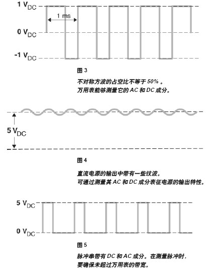 大多數現代萬用表在AC RMS轉換器前面使用一個隔直流電容器。它隔離DC電壓,而允許萬用表只測量AC值。更重要的是萬用表可為實現最好的測量標度AC信號。例如在測量電源的AC紋波時,萬用表隔離高電平的DC,而根據按AC成分選擇的量程放大AC 信號。