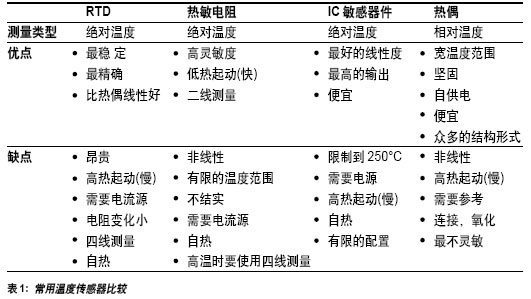 (RTD)、熱敏電阻、IC溫度感應器件和熱偶。它們各有自己的優點和缺點。