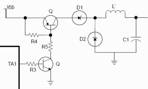 充電控制電路設(shè)計(jì)的核心是利用PWM控制MOSFET管的導(dǎo)通,MSP430F20X3系列時(shí)鐘頻率最高為16MHz。如果取PWM分辨率為9位,MOSFET管工作頻率為16000000/512=32768 (Hz),在音頻范圍外,不會(huì)產(chǎn)生噪聲。考慮到脈沖寬度與電源的輸出并非線性關(guān)系,電源輸出最多能控制到1/256,完全滿足設(shè)計(jì)精度的需要。原理圖如圖2。
