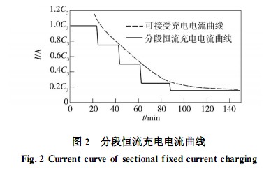 (1) 各段恒流值 I ( n) 的梯度宜適當減小 。對比電池溫升情況及各段恒流充電終止狀況相近的幾次分段恒流充電過程發現 ,對于充足電所用時間而言 ,5 段恒流充電的時間最短 ,而 4 段恒流充電的時間短于 3 段恒流充電的時間 。因此 ,適當減小各段恒流值下降梯度 (分段數增加) ,可使實際充電電流曲線更接近充電可接受電流曲線 。