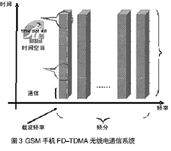 GSM(全球通)手機(jī)標(biāo)準(zhǔn)使用頻分多路傳輸和時(shí)分多路傳輸,同時(shí)傳送大量電話(huà),如圖3所示。