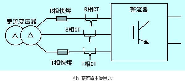 整流器中電流檢測(cè)元件采用的是nnc系列有源電流互感器(簡(jiǎn)稱CT),整流器中使用CT情況如圖7所示。