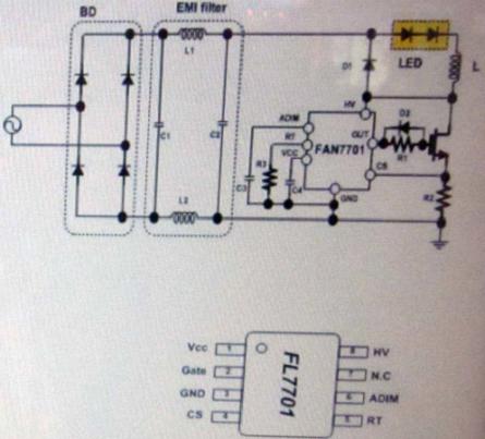 FL7701智能非隔離型PFC降壓LED驅(qū)動器(實(shí)物圖)