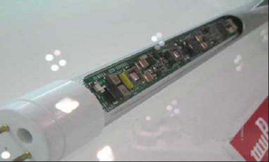 日本村田制作所展示過無需電解電容器的LED照明用電源,該驅(qū)動電源是面向Clear Sodick開發(fā)的電源模塊,其輸入輸出電容器采用了該公司的多層陶瓷電容(MLCC),可內(nèi)置于直管型LED照明器具的管內(nèi)。與采用鋁電解電容器時(shí)相比,除了可縮小產(chǎn)品尺寸外,還能延長產(chǎn)品壽命。為了獲得恒定電流,采用了DSP微控制器,開關(guān)頻率約為200kHz。輸出電容器采用了兩個(gè)約5μF的MLCC。輸入電壓支持AC100V以及200V兩種。