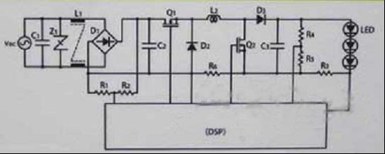 為了使LED照明獲得恒定電流,采用了DSP微控制器。開關(guān)頻率約為200kHz。輸出電容器采用了兩個(gè)約5μF的MLCC。“一般情況下,該容量的 MLCC無法完全吸收脈動電流,不過通過改進(jìn)DSP側(cè)的控制,不會感覺到照明器具的閃爍”(村田制作所)。主電路采用非絕緣升降壓型,沒有設(shè)置PFC(功 率因數(shù)改善)電路。外形尺寸為180mm×19.4mm×6.5mm。
