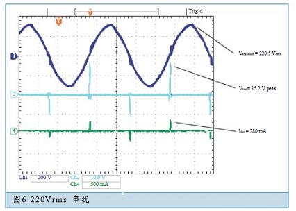 如下的示波器波形有助于理解TBU®高速保護(hù)器在不同的瞬態(tài)浪涌等級(jí)和電力線串?dāng)_等方面的三級(jí)保護(hù)方案中的性能.用如圖3 所示的線路進(jìn)行演示,不難發(fā)現(xiàn)次級(jí)的瞬態(tài)電壓抑制器中流過(guò)的能量已經(jīng)很小,TBU 上面流過(guò)的電流相對(duì)于浪涌電流來(lái)說(shuō)也是微乎其微。