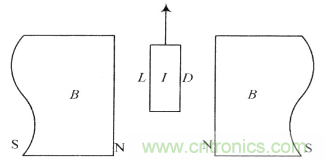 霍爾傳感器是利用霍爾效應實現磁電轉換的一種傳感器。它具有靈敏度高,應用廣泛的特點。其工作原理如圖2所示:一塊半導體薄片,其長度為L,寬度為B,厚度為D,置于磁感應強度為B的磁場中,在相對的兩邊通以控制電流I,且磁場方向與電流方向正交,則在半導體的兩邊將產生一個與控制電流和磁感應強度乘積成正比的電勢U,該電勢即為霍爾電壓,用UH表示,即UH=KHIB,其中KH為霍爾元件的靈敏度,半導體薄片就是霍爾元件。