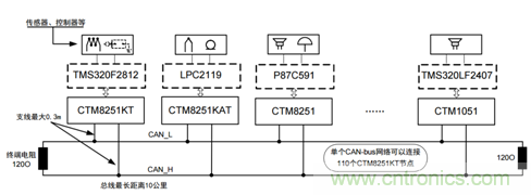 與485類似,CAN-bus也是以總線的方式進行通信的,所有的CAN節點都掛在一對差分線上。但CAN總線中的節點不存在主從的概念,當節點有數據需要上傳時可自主、即時發送,先進的仲裁機制保證數據不會沖突。