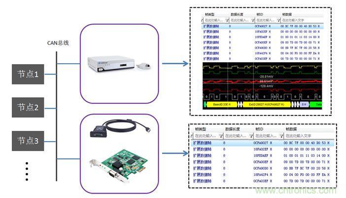 【導讀】在CAN網絡中,所有節點的數據收發共享一條總線。當面對未知的多節點CAN總線網絡時,如何準確分析各節點間的通信協議呢?