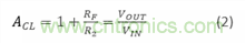 根據(jù)這些配置可分別得出反相和非反相運(yùn)算放大器閉環(huán)增益等式,等式1和等式2: