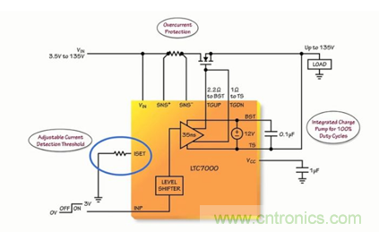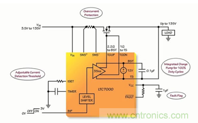 ADI 電源產(chǎn)品組的設計工程師 Mark Mullen 就上述問題為大家分享了一個基于LCT7000受保護的高壓側(cè)驅(qū)動器解決方案。