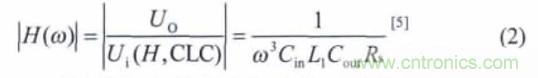 對于開關電源輸出而言,其交流信號即為電源紋波信號根據CLC 濾波電路傳遞函數: