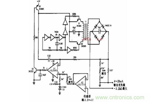 注:電路變送器的精度為12位。1%薄膜電阻,T1為PICO-31080。LT1013見說明。