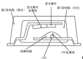 在一般的板上電源和通信設備市場上對光電耦合器件的要求如下:空間距離≥4.0mm,沿面距離≥4.0mm,絕緣距離≥0.4mm,必須滿足這些要求,否則無法應用。以上所述的要求,正是光電耦合器件實用化的結構制約因素。PS289xx系列封裝結構便是在上述的前提下,盡量削減組裝面積而設計的:它的空間距離和沿面距離相等,確保為4.0mm;引線寬為0.4±0.1mm,引線的中心間距為1.27mm,其內部結構如圖2所示。這種結構具備如下優點:①引線長度很短,接地面積的離散很小;②引線水平方向機械強度高。在內部結構里,充分考慮絕緣距離:① LED側和受光器件側的引線框之間距離最短;②LED側的金屬線和受光器件之間距離最短;③LED側的金屬線受光器件側的金屬線間距離最短。 電子技術書籍網