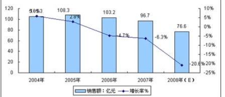 - 預計2008年銷售量將同比下降18.5%,銷售收入同比下降20.8%