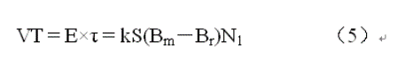就是變壓器的伏秒容量,即:伏秒容量等于輸入脈沖電壓幅度與脈沖寬度的乘積,這里我們把伏秒容量用VT來表示。伏秒容量VT表示:一個(gè)變壓器能夠承受多高的輸入電壓和多長時(shí)間的沖擊。