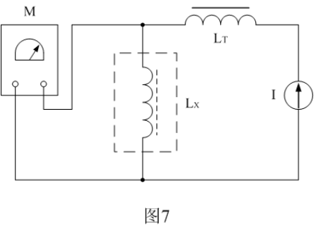 圖7是采用電流迭加法測試開關變壓器電感量或伏秒容量的工作原理圖。圖7中,M是電感測試儀,LT是隔離電感,I是恒流源,Lx為待測開關變壓器的初級電感。LT的電感量必須遠遠大于被測開關變壓器初級線圈的電感量。下面我們來介紹圖7的工作原理。