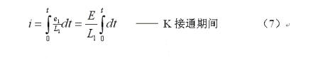 上面(8)式是用來計算開關電源變壓器初級線圈或儲能電感線圈電流的公式,式中 為流開關電源變壓器初級線圈或儲能電感線圈電流的最大值,即:開關接通后,持續時間等于 時,流過變壓器初級線圈或儲能電感線圈電流的瞬時值;E為開關電源的工作電壓,V為加于變壓器初級線圈兩端的開關電壓(直流脈沖電壓),L1為變壓器初級線圈電感量。