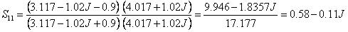 舉個例子,用100歐姆阻抗表征的復(fù)合回波損耗S11 = 0.53 - 0.12J 轉(zhuǎn)換到90歐姆的如下: