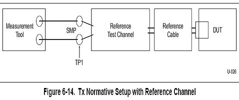 在USB3.0的TX的眼圖和抖動測試中,測量的是待測試信號經(jīng)過參考測試信道后TP1點的眼圖和抖動。如下圖4中的Reference test channel即為參考測試信道,在規(guī)范中定義了long channel、short channel和3米電纜三種參考測試信道。如果使用long channel或者較長電纜,信號到達接收端時衰減比較大,眼圖已經(jīng)閉合,USB3.0芯片接收端使用了CTLE均衡器對信號進行均衡后(CTLE均衡器介紹見本文最后一部分),信號眼圖的質(zhì)量將大大改善,所以要求測試儀器分析出CTLE均衡器處理后信號的眼圖和抖動。