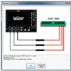 QPHY-DDR2的操作非常簡單,如右圖所示,它使用友好的圖形化界面引導(dǎo)用戶從探頭與被測系統(tǒng)連接開始一步步完成DDR2的所有測試。目前為止,力科DDR軟件包是能支持的測試項目最多的。