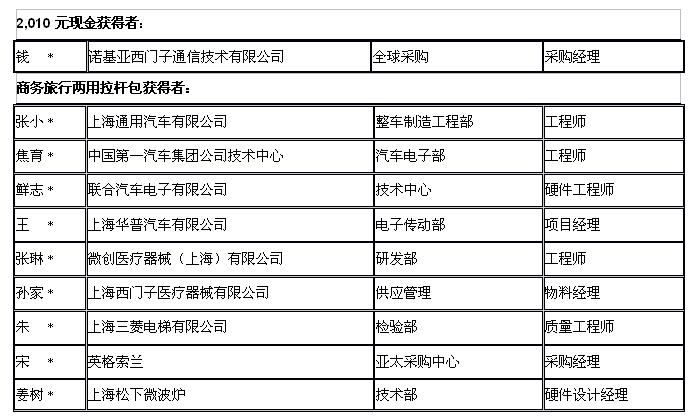 以下是第一批中獎(jiǎng)名單,并已于12月底通過展會(huì)官方電子通訊向業(yè)界通知。