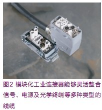 圖2所示為泰科電子的HVS連接器,該連接器為典型的工業級連接器。在該結構中可以容納6組單模塊及3組雙模塊。在多數風力發電應用中,HVS連接器使用戶可以在單一連接器中配置一個應用所需的多種接口,從而有效降低所需接口數量。接口模塊包括:高電壓觸點,標稱最高可達3000V;高電流觸點,最高可達400A;高密度單觸點,單模塊最高可達25個觸點;同軸觸點;RJ-45模塊插頭;USB;IEEE 1394 (火線);4同軸觸點,可支持1GHz操作;D-Sub接口。