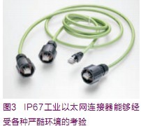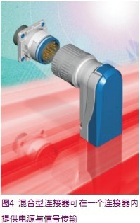 工業以太網已經成為監測與控制風力發電系統的重要方式之一。如圖3所示的IP67連接器,這樣的密封式連接器能夠提供高性能、高可靠性的服務。針對機柜內受保護的連接,如果沒有特別的的密封要求,網線可以使用標準的5e類線或6類線。由于大量驅動設備與電機擁有更高水平的內置智能功能,因此需要如圖4所示的混合型連接器,其在一個連接器內最多能夠提供多達8個電源觸點及以太網接口,并采用螺絲固定的機械連接方式,從而提供防震性。通過這樣的產品,一個連接器即可傳輸信號與電力。