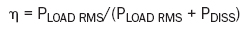 這符合PLOADPEAK=I2PEAKRL=49W/通道的輸出峰值功率,和PLOADRMS=PLOADPEAK/2=24.5W/通道的RMS輸出功率。采用效率公式: