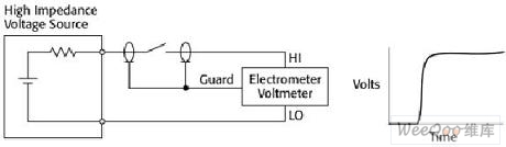 高阻抗電路對靜電干擾十分敏感,因此DUT和連接線都應(yīng)該很好地屏蔽以防止噪聲感應(yīng)。