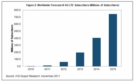 根據(jù)IHS iSuppli公司的智能手機與融合設備市場研究報告顯示,在移動網(wǎng)絡運營商的大力支持下,下一代4G無線標準——長期演進(LTE)在今年以及未來幾年將取得驚人的增長,增長率將高達數(shù)倍甚至數(shù)十倍,到2015年其用戶數(shù)量將達到相當可觀的水平。