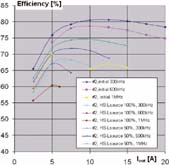 圖6所示效率是指不同頻率下負載電流和漏極電感的函數。此外,可觀察到如下結果: