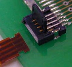 該款連接器的接觸間距為0.2毫米(交錯(cuò)對(duì)齊),可配置0.4毫米引線。 目前可提供11引腳和29引腳連接器,并計(jì)劃達(dá)到81引腳。連接器高度為0.9 + / - 0.1毫米。其外殼材料采用熱塑性塑料(UL 94V-0)。用于固定接地卡和觸點(diǎn)的銅合金為無(wú)鹵素材料。其連接方式為市場(chǎng)上最常見的下觸式,配有翻頂式執(zhí)行機(jī)構(gòu),關(guān)門操作也簡(jiǎn)便。就連接器尺寸而言,連接器可以通過耳式電纜切口結(jié)構(gòu)和外殼插槽結(jié)構(gòu)具備前電纜保持功能。所需的電纜厚度為0.2+ /-0.03毫米。