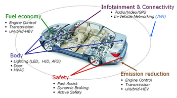 隨著西方汽車市場(chǎng)需求的復(fù)蘇以及發(fā)展中經(jīng)濟(jì)體車輛數(shù)目的持續(xù)增長(zhǎng)使燃料消耗和污染不斷增加,政府和制造商都在積極探索改善燃油經(jīng)濟(jì)性以節(jié)約能源、減少排放的途徑,汽車中越來(lái)越多的電子功能也使半導(dǎo)體元件在車輛中的比重不斷激增。面對(duì)環(huán)保和豐富消費(fèi)者體驗(yàn)的雙重挑戰(zhàn),半導(dǎo)體制造商正在利用其技術(shù)專長(zhǎng)開發(fā)各種符合汽車規(guī)范的解決方案。
