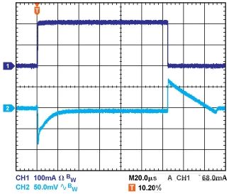 輸出電容還會影響調節(jié)器對負載電流變化的響應??刂骗h(huán)路的大信號帶寬有限,因此輸出電容必須提供快速瞬變所需的大多數負載電流。當負載電流以500 mA/ μs的速率從1 mA變?yōu)?00 mA時,1 μF電容無法提供足夠的電流,因而產生大約80 mV的負載瞬態(tài),如圖1所示。當電容增加到10 μF時,負載瞬態(tài)會降至約70 mV,如圖2所示。當輸出電容再次增加并達到20 μF時,調節(jié)器控制環(huán)路可進行跟蹤,主動降低負載瞬態(tài),如圖3所示。這些示例都采用線性調節(jié)器ADP151,其輸入和輸出電壓分別為5 V和3.3 V。