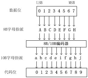 在串行鏈路通信中,為了實現信號時鐘的恢復,需要避免出現長串0和長串1,同時保持電路上正負電平平衡,能正確地交流耦合避免信號失真,需要傳輸信號中的0和1數量數目相等,因此業界廣泛應用8B/10B編解碼方法:實現8B到10B的映射(圖4),即一個字節(8bits)用10bits來表示,從中挑選出連續0或者1個數不會超過3個,0和1的個數差不大于2 (最多6個’0’或’1’)。