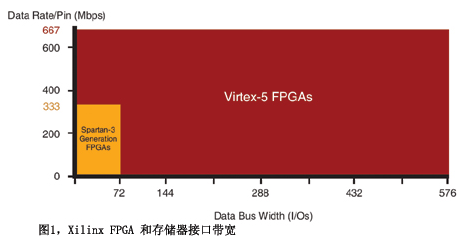 對(duì)于將存儲(chǔ)器接口帶寬推至極限的應(yīng)用,如每引腳 667 Mbps 的 DDR2 SDRAM,Xilinx 提供了 Virtex-5 FPGA。