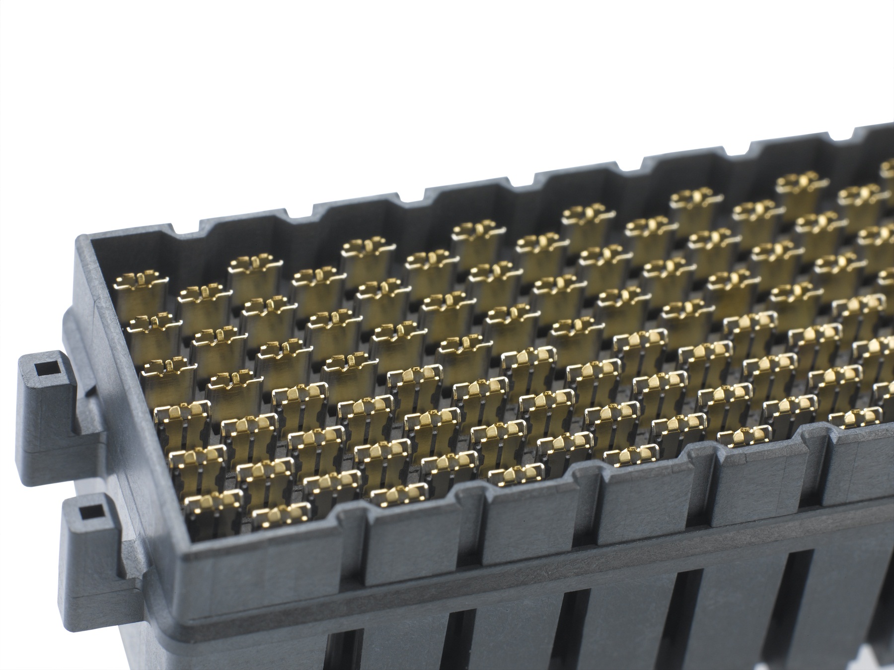 NeoScale平行板式互連系統(tǒng)采用Molex專利Solder Charge Technology™技術(shù)作為PCB端接的安裝方式。與球柵陣列連接器安裝方式相比,機械SMT工藝具有更高的成本效益和可靠性,在批量生產(chǎn)中簡化了設計并促成牢固的焊接連接,省去了熱安裝和復雜形式的焊接引線座(solder tail)。