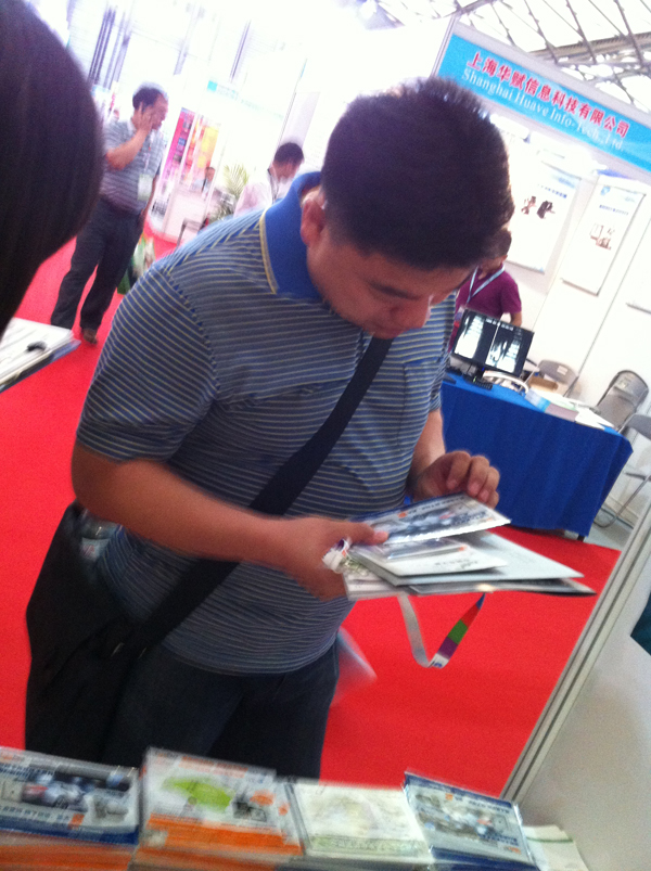 上圖CNT發(fā)行人員向展商介紹EP資料