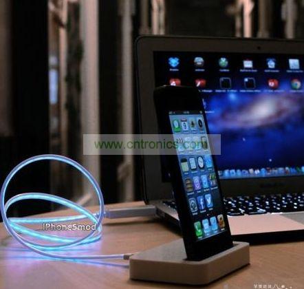 這組閃光白色數據線和Dock底座名稱為The Flash Lightning Dock,它能夠非常完美的給iPhone 5和第五代iPod touch充電和完成同步任務。在白色Dock底座上,使用iPhone 5進行語音通話、Facetime通話都毫無壓力,加之炫酷的閃光數據線,讓這款第三方配件尤為搶眼。目前這款外設售價59.90美元。