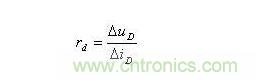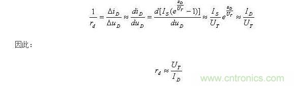 ID為靜態電流,常溫下UT=26mV。可知,靜態電流ID越大,rd將越小。設UD=0.7V時,ID=2mA。由此可得直流電阻RD=350,而動態電阻(交流電阻)為: