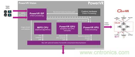 PowerVR系列產品中的每款內核均能與任何一種總線架構、處理器或其他IP搭配運作,Imagination已完成所有PowerVR多媒體內核之間的優化設計,以最大化系統性能,并可將能耗、硅晶面積以及內存帶寬降至最低。舉例來說,編碼器與相機ISP間的緊密耦合可降低內存流量,并可針對給定的比特率實現更佳的比特率配置,以產生出眾的影像質量。此外,GPU、視頻編碼器和相機ISP之間的數據路徑優化可為IoT傳感器、ADAS、安全監控以及增強現實等基于PowerVR的高效視頻IP平臺下一代應用奠定良好基礎。
