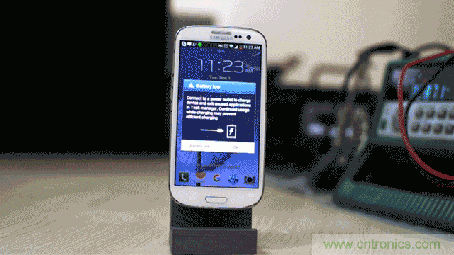 盒子里。緩沖電池的作用是先儲(chǔ)存接收到的電能,然后再給手機(jī)充電。據(jù) Ars Technica 描述,在發(fā)射器打開 20 秒后,緩沖電池就開始工作了,也就是說(shuō),手機(jī)座上的三星手機(jī)開始顯示充電。