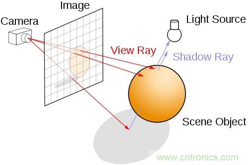 反向追蹤算法正好相反,它是從觀察者的角度出發(fā),只追蹤那些觀察者所能看見的表面投射光。就目前而言,所有3D制作軟件的光線追蹤算法都是采用反向追蹤法,原因是這種算法能夠最大程度地節(jié)省計(jì)算機(jī)的系統(tǒng)資源,而且不會導(dǎo)致渲染質(zhì)量的下降。