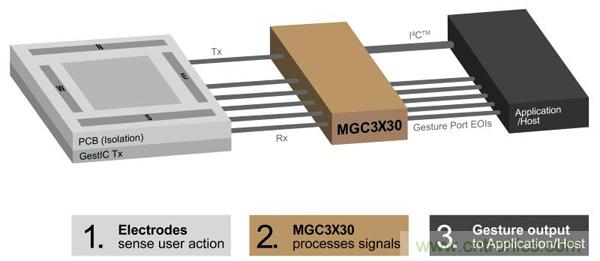 其中比較有代表性的,要數(shù)Microchip公司的GestIC技術。它基于電場感應的原理,在電子設備周邊的空間中形成一個電場。當手部在空間中運動時會使電場發(fā)生畸變,布設在電場中的電極接收器會感應到這種變化,并通過專門的控制芯片進行信號處理,對手勢進行識別和運動追蹤,并將數(shù)據(jù)傳遞給電子設備做出響應。Microchip代理商世健公司產(chǎn)品經(jīng)理介紹,與采用攝像頭的光學3D手勢識別技術相比,GestIC技術最大的優(yōu)勢在于功耗極低,能耗節(jié)省多達90%,同時能避免環(huán)境光等外部因素的干擾,雖然是一個近場識別技術,但其在家庭自動化、家電控制、音響系統(tǒng)、電腦及配件、汽車電子等方面,會有諸多應用場景。