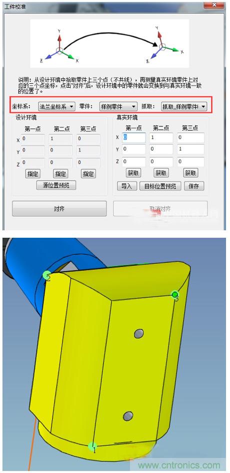 然后,我們對(duì)零件的三維模型進(jìn)行工件校準(zhǔn)以及對(duì)