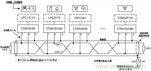 【導讀】在CAN-bus電路設計中,理論上收發(fā)器支持節(jié)點數最多可做到110個,但實際應用中往往達不到這個數量。這里我們談談如何通過合理的CAN-bus總線設計,保證CAN網絡中的通訊的可靠性和節(jié)點數量。