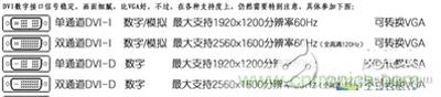 DVI接口是數字信號接口,信道帶寬和抗干擾能力比之VGA有明顯的提升,DVI接口可以進一步分為三種,DVI-A、DVI-D、DVI-I。DVI-A可以理解為VGA換湯不換藥的變種,目前基本銷聲匿跡,而主流的DVI-D和DVI-I又有單通道和雙通道之分,信道帶寬兩倍差距。